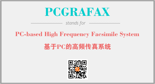 上述内容是“PC-based High Frequency Facsimile System”作为“PCGRAFAX”的缩写,解释为“基于PC的高频传真系统”时的信息,以及英文缩略词PCGRAFAX所代表的英文单词,其对应的中文拼音、详细解释以及在英文中的流行度和相关分类、应用领域及应用示例等。