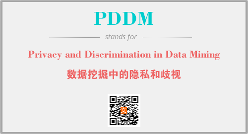 上述内容是“Privacy and Discrimination in Data Mining”作为“PDDM”的缩写,解释为“数据挖掘中的隐私和歧视”时的信息,以及英文缩略词PDDM所代表的英文单词,其对应的中文拼音、详细解释以及在英文中的流行度和相关分类、应用领域及应用示例等。