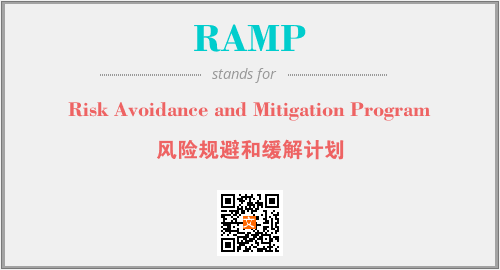 上述内容是“Risk Avoidance and Mitigation Program”作为“RAMP”的缩写,解释为“风险规避和缓解计划”时的信息,以及英文缩略词RAMP所代表的英文单词,其对应的中文拼音、详细解释以及在英文中的流行度和相关分类、应用领域及应用示例等。