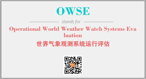 英文缩略词“OWSE”经常作为“Operational World Weather Watch Systems Evaluation”的英文缩写来使用,中文表示:“世界气象观测系统运行评估”。本文将详细介绍英文缩写词OWSE所代表英文单词,其对应的中文拼音、详细解释以及在英语中的流行度。此外,还有关于缩略词OWSE的分类、应用领域及相关应用示例等。