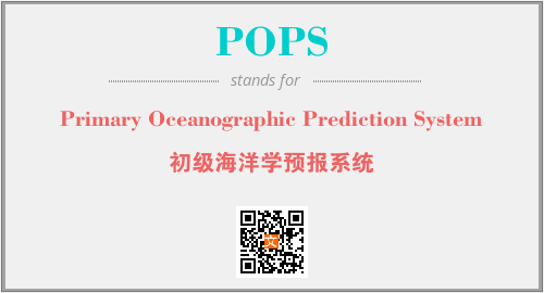 英文缩略词“POPS”经常作为“Primary Oceanographic Prediction System”的英文缩写来使用,中文表示:“初级海洋学预报系统”。本文将详细介绍英文缩写词POPS所代表英文单词,其对应的中文拼音、详细解释以及在英语中的流行度。此外,还有关于缩略词POPS的分类、应用领域及相关应用示例等。