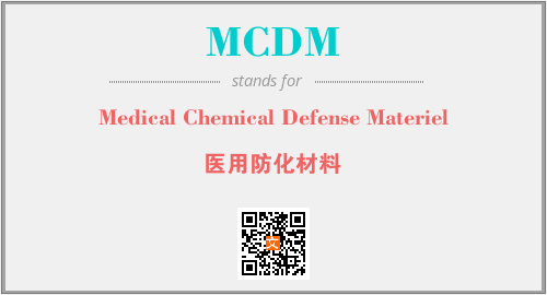 英文缩略词“MCDM”经常作为“Medical Chemical Defense Materiel”的英文缩写来使用,中文表示:“医用防化材料”。本文将详细介绍英文缩写词MCDM所代表英文单词,其对应的中文拼音、详细解释以及在英语中的流行度。此外,还有关于缩略词MCDM的分类、应用领域及相关应用示例等。