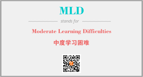 上述内容是“Moderate Learning Difficulties”作为“MLD”的缩写,解释为“中度学习困难”时的信息,以及英文缩略词MLD所代表的英文单词,其对应的中文拼音、详细解释以及在英文中的流行度和相关分类、应用领域及应用示例等。