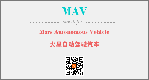 上述内容是“Mars Autonomous Vehicle”作为“MAV”的缩写,解释为“火星自动驾驶汽车”时的信息,以及英文缩略词MAV所代表的英文单词,其对应的中文拼音、详细解释以及在英文中的流行度和相关分类、应用领域及应用示例等。