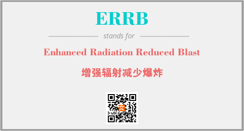 英文缩略词“ERRB”经常作为“Enhanced Radiation Reduced Blast”的英文缩写来使用,中文表示:“增强辐射减少爆炸”。本文将详细介绍英文缩写词ERRB所代表英文单词,其对应的中文拼音、详细解释以及在英语中的流行度。此外,还有关于缩略词ERRB的分类、应用领域及相关应用示例等。