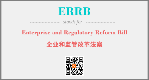 英文缩略词“ERRB”经常作为“Enterprise and Regulatory Reform Bill”的英文缩写来使用,中文表示:“企业和监管改革法案”。本文将详细介绍英文缩写词ERRB所代表英文单词,其对应的中文拼音、详细解释以及在英语中的流行度。此外,还有关于缩略词ERRB的分类、应用领域及相关应用示例等。