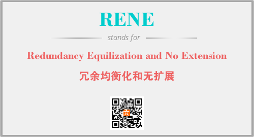 上述内容是“Redundancy Equilization and No Extension”作为“RENE”的缩写,解释为“冗余均衡化和无扩展”时的信息,以及英文缩略词RENE所代表的英文单词,其对应的中文拼音、详细解释以及在英文中的流行度和相关分类、应用领域及应用示例等。