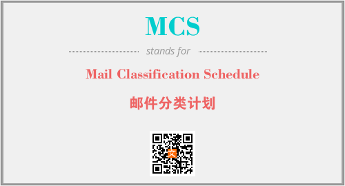 英文缩略词“MCS”经常作为“Mail Classification Schedule”的英文缩写来使用,中文表示:“邮件分类计划”。本文将详细介绍英文缩写词MCS所代表英文单词,其对应的中文拼音、详细解释以及在英语中的流行度。此外,还有关于缩略词MCS的分类、应用领域及相关应用示例等。
