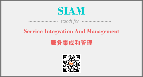 上述内容是“Service Integration And Management”作为“SIAM”的缩写,解释为“服务集成和管理”时的信息,以及英文缩略词SIAM所代表的英文单词,其对应的中文拼音、详细解释以及在英文中的流行度和相关分类、应用领域及应用示例等。