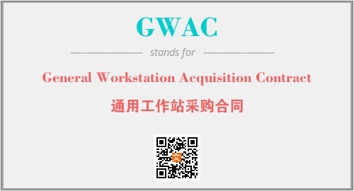 上述内容是“General Workstation Acquisition Contract”作为“GWAC”的缩写,解释为“通用工作站采购合同”时的信息,以及英文缩略词GWAC所代表的英文单词,其对应的中文拼音、详细解释以及在英文中的流行度和相关分类、应用领域及应用示例等。