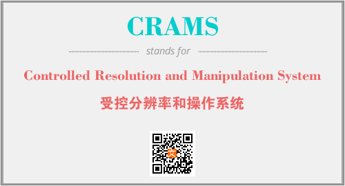 以上为Controlled Resolution and Manipulation System英文缩略词CRAMS的中文解释,以及该英文缩写在英语的流行度、分类和应用领域方面的信息。