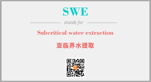 上述内容是“Subcritical water extraction”作为“SWE”的缩写,解释为“亚临界水提取”时的信息,以及英文缩略词SWE所代表的英文单词,其对应的中文拼音、详细解释以及在英文中的流行度和相关分类、应用领域及应用示例等。