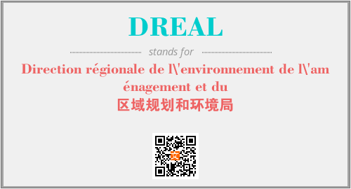 上述内容是“Direction régionale de l\'environnement de l\'aménagement et du”作为“DREAL”的缩写,解释为“区域规划和环境局”时的信息,以及英文缩略词DREAL所代表的英文单词,其对应的中文拼音、详细解释以及在英文中的流行度和相关分类、应用领域及应用示例等。