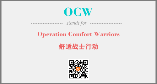 上述内容是“Operation Comfort Warriors”作为“OCW”的缩写,解释为“舒适战士行动”时的信息,以及英文缩略词OCW所代表的英文单词,其对应的中文拼音、详细解释以及在英文中的流行度和相关分类、应用领域及应用示例等。