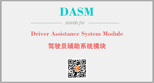 英文缩略词“DASM”经常作为“Driver Assistance System Module”的英文缩写来使用,中文表示:“驾驶员辅助系统模块”。本文将详细介绍英文缩写词DASM所代表英文单词,其对应的中文拼音、详细解释以及在英语中的流行度。此外,还有关于缩略词DASM的分类、应用领域及相关应用示例等。