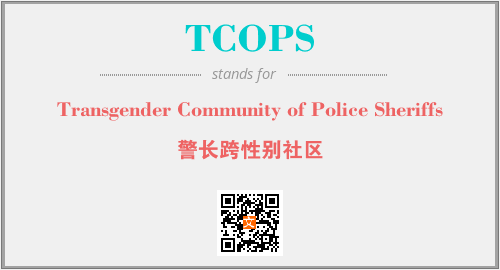 上述内容是“Transgender Community of Police Sheriffs”作为“TCOPS”的缩写,解释为“警长跨性别社区”时的信息,以及英文缩略词TCOPS所代表的英文单词,其对应的中文拼音、详细解释以及在英文中的流行度和相关分类、应用领域及应用示例等。