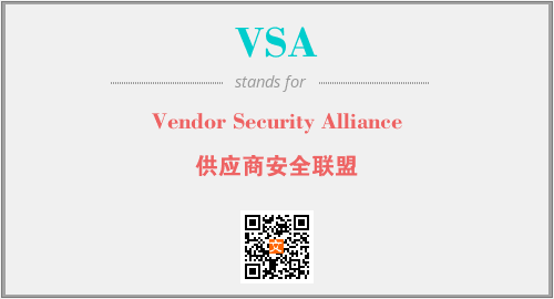 英文缩略词“VSA”经常作为“Vendor Security Alliance”的英文缩写来使用,中文表示:“供应商安全联盟”。本文将详细介绍英文缩写词VSA所代表英文单词,其对应的中文拼音、详细解释以及在英语中的流行度。此外,还有关于缩略词VSA的分类、应用领域及相关应用示例等。