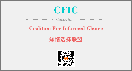 上述内容是“Coalition For Informed Choice”作为“CFIC”的缩写,解释为“知情选择联盟”时的信息,以及英文缩略词CFIC所代表的英文单词,其对应的中文拼音、详细解释以及在英文中的流行度和相关分类、应用领域及应用示例等。