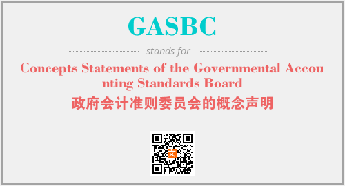 上述内容是“Concepts Statements of the Governmental Accounting Standards Board”作为“GASBC”的缩写,解释为“政府会计准则委员会的概念声明”时的信息,以及英文缩略词GASBC所代表的英文单词,其对应的中文拼音、详细解释以及在英文中的流行度和相关分类、应用领域及应用示例等。
