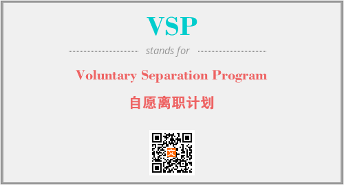 英文缩略词“VSP”经常作为“Voluntary Separation Program”的英文缩写来使用,中文表示:“自愿离职计划”。本文将详细介绍英文缩写词VSP所代表英文单词,其对应的中文拼音、详细解释以及在英语中的流行度。此外,还有关于缩略词VSP的分类、应用领域及相关应用示例等。