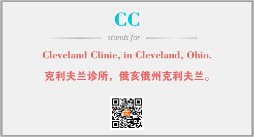 上述内容是“Cleveland Clinic, in Cleveland, Ohio.”作为“CC”的缩写,解释为“克利夫兰诊所,俄亥俄州克利夫兰。”时的信息,以及英文缩略词CC所代表的英文单词,其对应的中文拼音、详细解释以及在英文中的流行度和相关分类、应用领域及应用示例等。