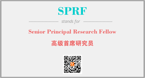 上述内容是“Senior Principal Research Fellow”作为“SPRF”的缩写,解释为“高级首席研究员”时的信息,以及英文缩略词SPRF所代表的英文单词,其对应的中文拼音、详细解释以及在英文中的流行度和相关分类、应用领域及应用示例等。