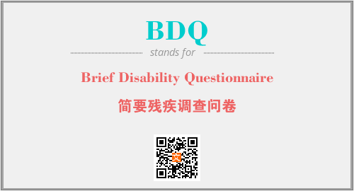 英文缩略词“BDQ”经常作为“Brief Disability Questionnaire”的英文缩写来使用,中文表示:“简要残疾调查问卷”。本文将详细介绍英文缩写词BDQ所代表英文单词,其对应的中文拼音、详细解释以及在英语中的流行度。此外,还有关于缩略词BDQ的分类、应用领域及相关应用示例等。