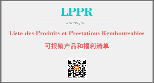 上述内容是“Liste des Produits et Prestations Remboursables”作为“LPPR”的缩写,解释为“可报销产品和福利清单”时的信息,以及英文缩略词LPPR所代表的英文单词,其对应的中文拼音、详细解释以及在英文中的流行度和相关分类、应用领域及应用示例等。