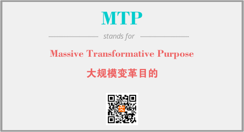 以上为Massive Transformative Purpose英文缩略词MTP的中文解释,以及该英文缩写在英语的流行度、分类和应用领域方面的信息。