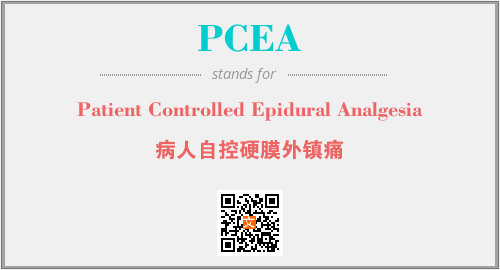 英文缩略词“PCEA”经常作为“Patient Controlled Epidural Analgesia”的英文缩写来使用,中文表示:“病人自控硬膜外镇痛”。本文将详细介绍英文缩写词PCEA所代表英文单词,其对应的中文拼音、详细解释以及在英语中的流行度。此外,还有关于缩略词PCEA的分类、应用领域及相关应用示例等。