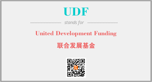 英文缩略词“UDF”经常作为“United Development Funding”的英文缩写来使用,中文表示:“联合发展基金”。本文将详细介绍英文缩写词UDF所代表英文单词,其对应的中文拼音、详细解释以及在英语中的流行度。此外,还有关于缩略词UDF的分类、应用领域及相关应用示例等。