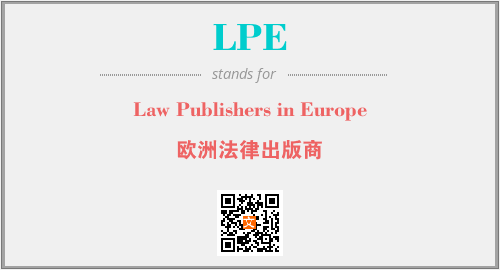 以上为Law Publishers in Europe英文缩略词LPE的中文解释,以及该英文缩写在英语的流行度、分类和应用领域方面的信息。