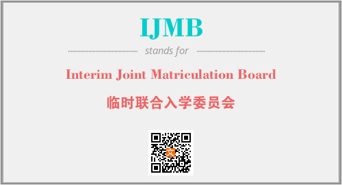 英文缩略词“IJMB”经常作为“Interim Joint Matriculation Board”的英文缩写来使用,中文表示:“临时联合入学委员会”。本文将详细介绍英文缩写词IJMB所代表英文单词,其对应的中文拼音、详细解释以及在英语中的流行度。此外,还有关于缩略词IJMB的分类、应用领域及相关应用示例等。