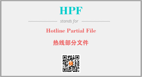 上述内容是“Hotline Partial File”作为“HPF”的缩写,解释为“热线部分文件”时的信息,以及英文缩略词HPF所代表的英文单词,其对应的中文拼音、详细解释以及在英文中的流行度和相关分类、应用领域及应用示例等。