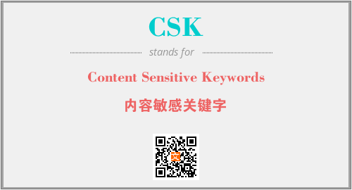 英文缩略词“CSK”经常作为“Content Sensitive Keywords”的英文缩写来使用,中文表示:“内容敏感关键字”。本文将详细介绍英文缩写词CSK所代表英文单词,其对应的中文拼音、详细解释以及在英语中的流行度。此外,还有关于缩略词CSK的分类、应用领域及相关应用示例等。