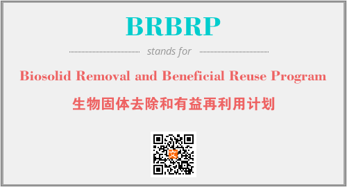 上述内容是“Biosolid Removal and Beneficial Reuse Program”作为“BRBRP”的缩写,解释为“生物固体去除和有益再利用计划”时的信息,以及英文缩略词BRBRP所代表的英文单词,其对应的中文拼音、详细解释以及在英文中的流行度和相关分类、应用领域及应用示例等。