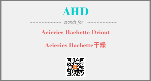 英文缩略词“AHD”经常作为“Acieries Hachette Driout”的英文缩写来使用,中文表示:“Acieries Hachette干燥”。本文将详细介绍英文缩写词AHD所代表英文单词,其对应的中文拼音、详细解释以及在英语中的流行度。此外,还有关于缩略词AHD的分类、应用领域及相关应用示例等。