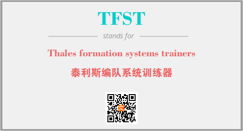 上述内容是“Thales formation systems trainers”作为“TFST”的缩写,解释为“泰利斯编队系统训练器”时的信息,以及英文缩略词TFST所代表的英文单词,其对应的中文拼音、详细解释以及在英文中的流行度和相关分类、应用领域及应用示例等。
