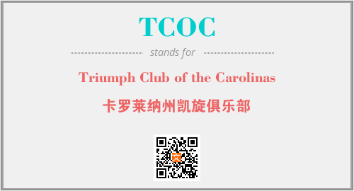 以上为Triumph Club of the Carolinas英文缩略词TCOC的中文解释,以及该英文缩写在英语的流行度、分类和应用领域方面的信息。