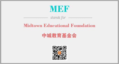 上述内容是“Midtown Educational Foundation”作为“MEF”的缩写,解释为“中城教育基金会”时的信息,以及英文缩略词MEF所代表的英文单词,其对应的中文拼音、详细解释以及在英文中的流行度和相关分类、应用领域及应用示例等。