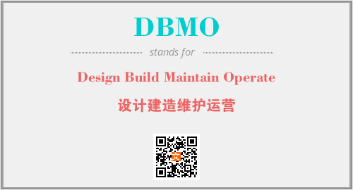 上述内容是“Design Build Maintain Operate”作为“DBMO”的缩写,解释为“设计建造维护运营”时的信息,以及英文缩略词DBMO所代表的英文单词,其对应的中文拼音、详细解释以及在英文中的流行度和相关分类、应用领域及应用示例等。