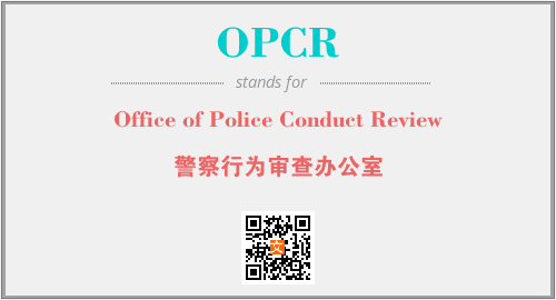 上述内容是“Office of Police Conduct Review”作为“OPCR”的缩写,解释为“警察行为审查办公室”时的信息,以及英文缩略词OPCR所代表的英文单词,其对应的中文拼音、详细解释以及在英文中的流行度和相关分类、应用领域及应用示例等。