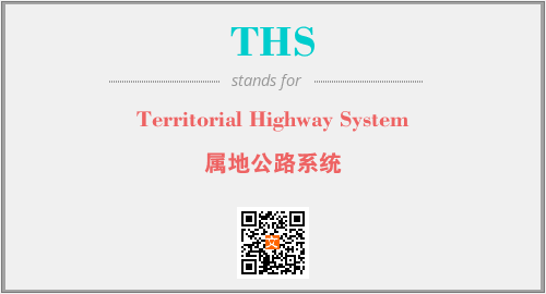 英文缩略词“THS”经常作为“Territorial Highway System”的英文缩写来使用,中文表示:“属地公路系统”。本文将详细介绍英文缩写词THS所代表英文单词,其对应的中文拼音、详细解释以及在英语中的流行度。此外,还有关于缩略词THS的分类、应用领域及相关应用示例等。