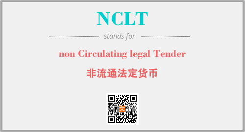 英文缩略词“NCLT”经常作为“non Circulating legal Tender”的英文缩写来使用,中文表示:“非流通法定货币”。本文将详细介绍英文缩写词NCLT所代表英文单词,其对应的中文拼音、详细解释以及在英语中的流行度。此外,还有关于缩略词NCLT的分类、应用领域及相关应用示例等。