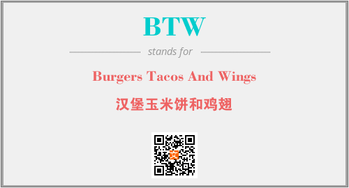 英文缩略词“BTW”经常作为“Burgers Tacos And Wings”的英文缩写来使用,中文表示:“汉堡玉米饼和鸡翅”。本文将详细介绍英文缩写词BTW所代表英文单词,其对应的中文拼音、详细解释以及在英语中的流行度。此外,还有关于缩略词BTW的分类、应用领域及相关应用示例等。