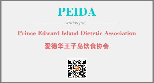 上述内容是“Prince Edward Island Dietetic Association”作为“PEIDA”的缩写,解释为“爱德华王子岛饮食协会”时的信息,以及英文缩略词PEIDA所代表的英文单词,其对应的中文拼音、详细解释以及在英文中的流行度和相关分类、应用领域及应用示例等。