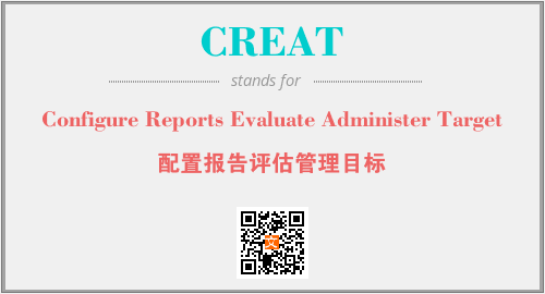 上述内容是“Configure Reports Evaluate Administer Target”作为“CREAT”的缩写,解释为“配置报告评估管理目标”时的信息,以及英文缩略词CREAT所代表的英文单词,其对应的中文拼音、详细解释以及在英文中的流行度和相关分类、应用领域及应用示例等。