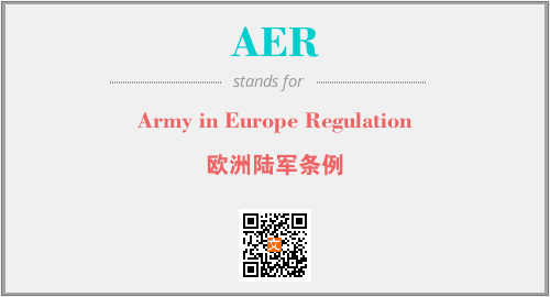上述内容是“Army in Europe Regulation”作为“AER”的缩写,解释为“欧洲陆军条例”时的信息,以及英文缩略词AER所代表的英文单词,其对应的中文拼音、详细解释以及在英文中的流行度和相关分类、应用领域及应用示例等。