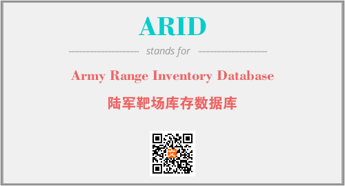 英文缩略词“ARID”经常作为“Army Range Inventory Database”的英文缩写来使用,中文表示:“陆军靶场库存数据库”。本文将详细介绍英文缩写词ARID所代表英文单词,其对应的中文拼音、详细解释以及在英语中的流行度。此外,还有关于缩略词ARID的分类、应用领域及相关应用示例等。