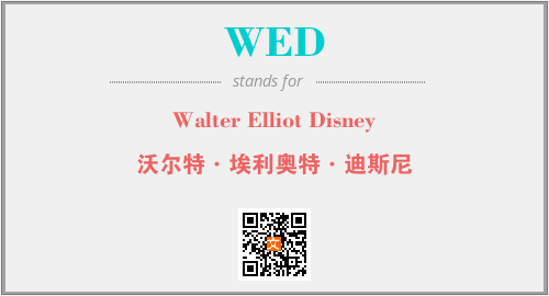上述内容是“Walter Elliot Disney”作为“WED”的缩写,解释为“沃尔特·埃利奥特·迪斯尼”时的信息,以及英文缩略词WED所代表的英文单词,其对应的中文拼音、详细解释以及在英文中的流行度和相关分类、应用领域及应用示例等。